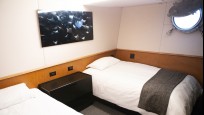 There two Junior Suites located on the upper deck with either 1 King or 2 Twins beds. The suits feature air conditioning with individual controls, a private bathroom, sink and shower plus top-of-the-line mattresses, pillows and comforters.